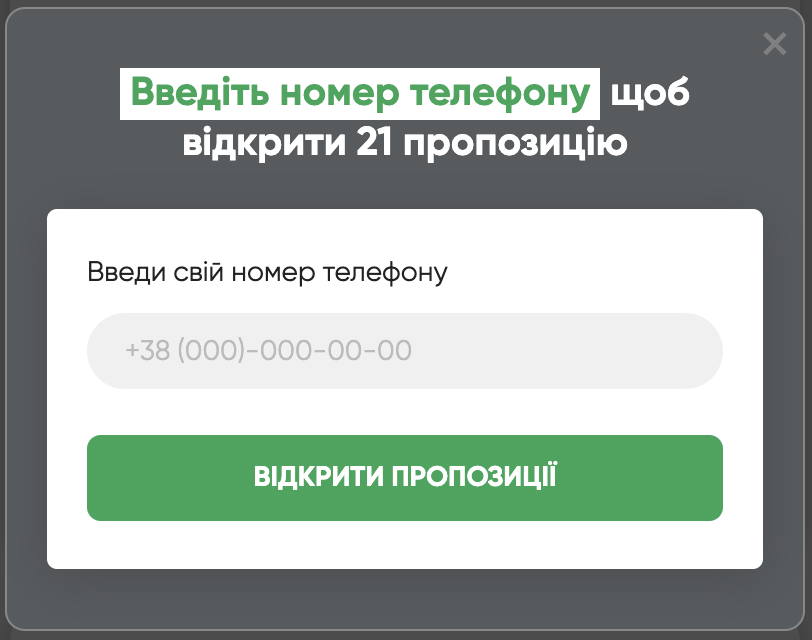 Підказка: ви можете зробити вітрину, де потенційним лідам спочатку потрібно залишити свій номер телефону і вже після цього отримати доступ до сторінки з усіма оферами.