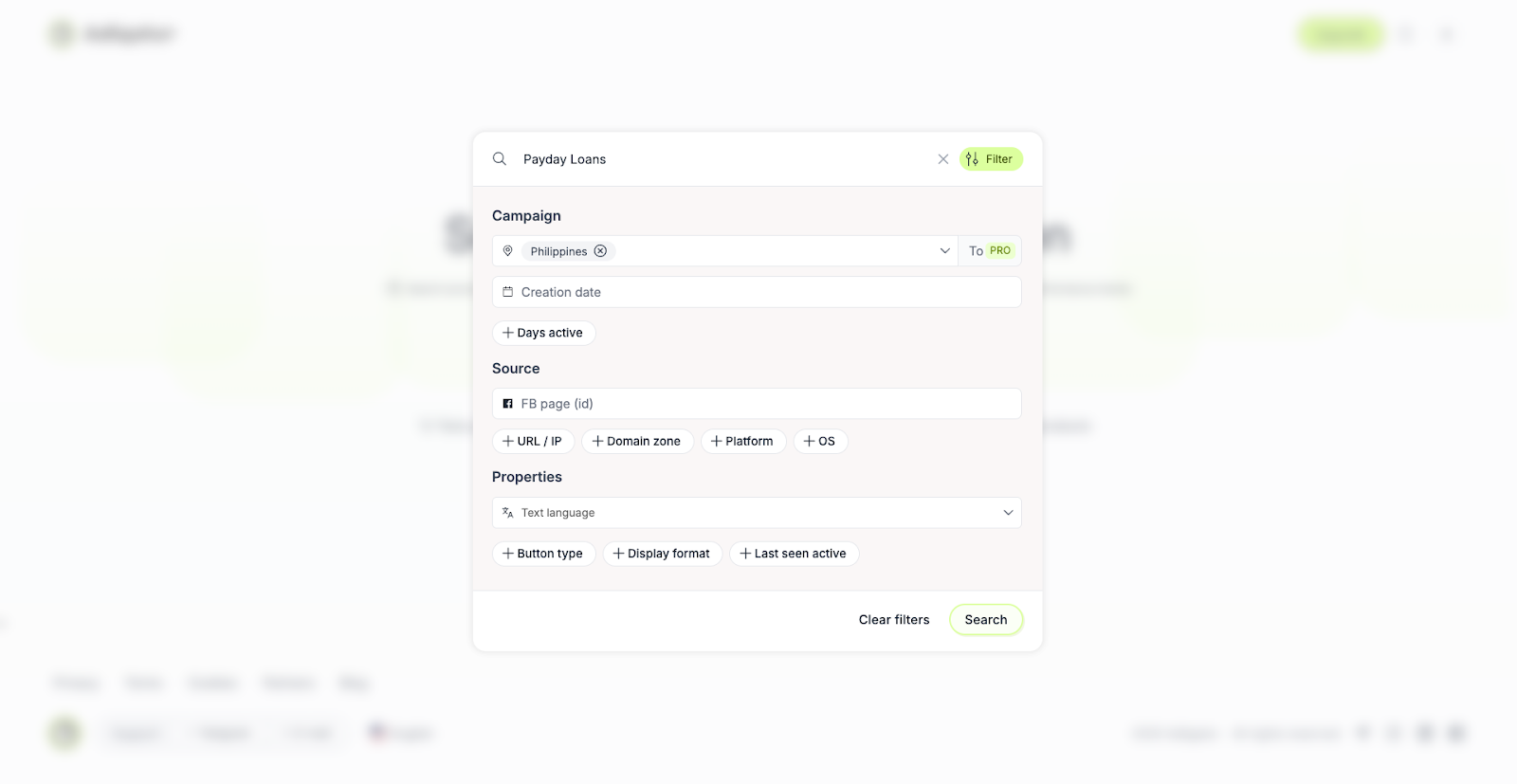 Аналізувати будемо ФБ креативи, тому наступним кроком переходимо до spy-сервісу Adligator. Це український продукт із великою базою креативів та розвиненими аналітичними інструментами для пошуку працюючих рекламних підходів.