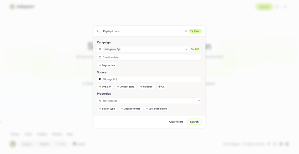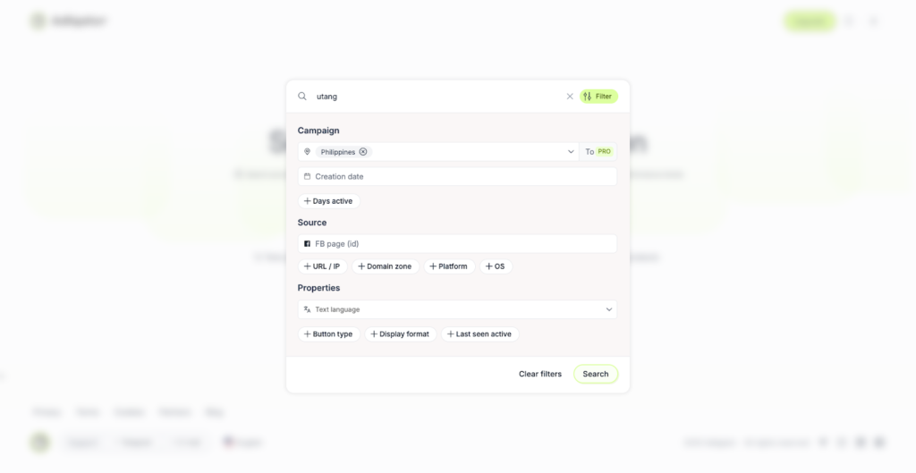 Давайте тепер спробуємо знайти оголошення філіппінською мовою. Вбиваємо “utang”(так називають “позики” на місцевій мові)