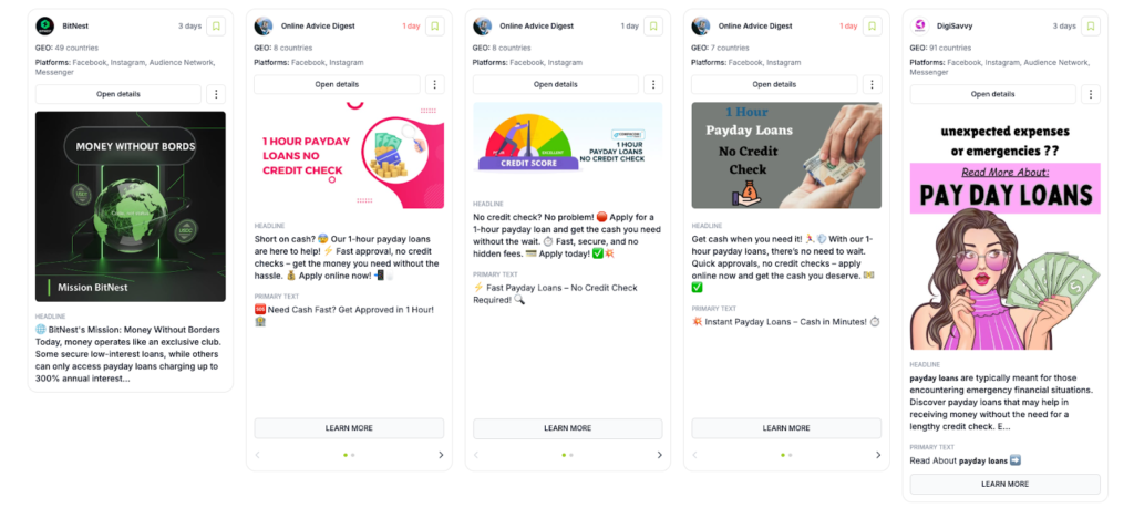 Іспанія – тут максимально прості та білі підходи. Скоріше через те, що ринок вже дуже добре знайомий з PDL продуктами і просто немає сенсу “лізти зі шкури” та пояснювати всі тонкощі продукту. А тим паче намагатися продати мікрофінанси, як щось неймовірне. Реклама просто з’являється у юзерів в стрічці, а вони клікають на неї, якщо цього дійсно потребують