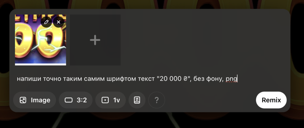 Можна прямо в промпті просити: “напиши 500 COINS BONUS жирним, нижче — Last Chance дрібніше”. І Sora це зробить без помилок. На англійській це майже завжди 100% чітко, на українській — бувають фейли, але кілька повторних спроб — і все стає на місце. Крім того ви можете прикріпити референс шрифту, кольору, текстури тексту і отримати на виході потрібний текст у потрібному стилі.