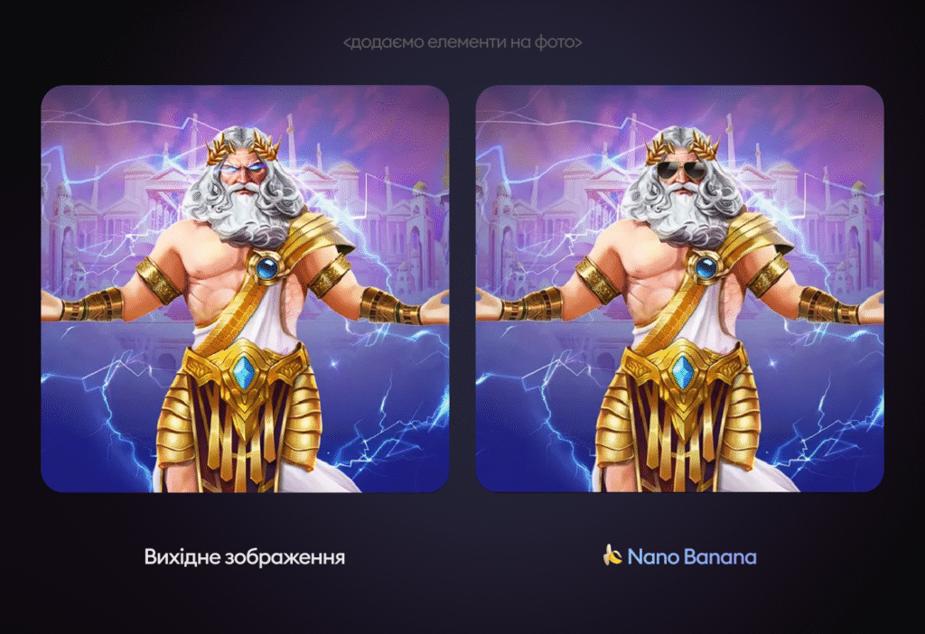 Nano Banana вирішує цю проблему: вона зберігає справжній вигляд зображення й нативно “вписує” потрібні елементи без спотворення основної картинки.